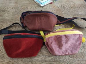 Aus Stoffresten nähte Eva Beutel, kleine Taschen, Mützen und vieles mehr.